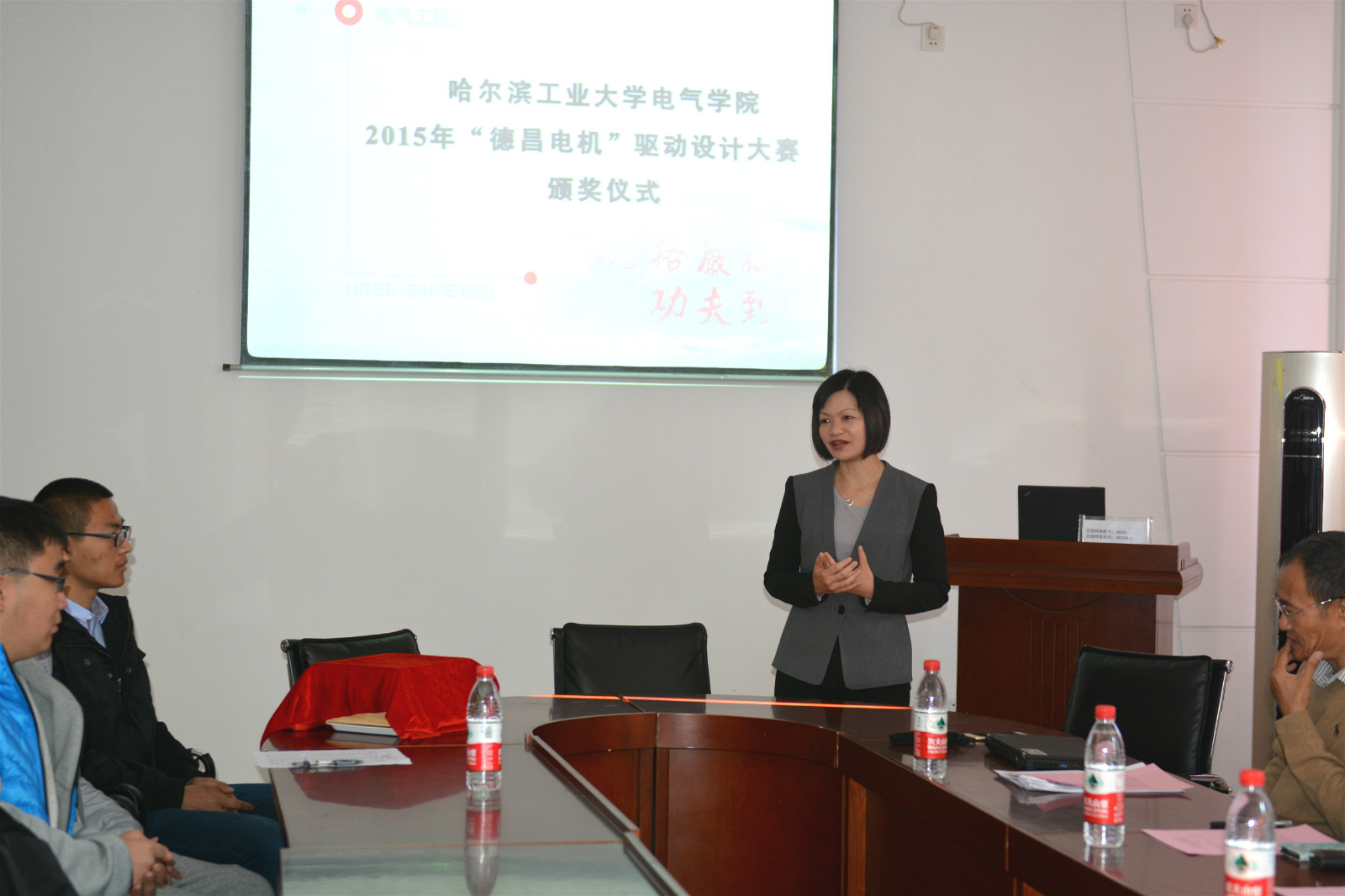 2015年10月14日上午,2015年第四届“德昌杯”电机驱动大赛颁奖仪式在电机楼30040会议室举行。出席本次颁奖仪式的领导与嘉宾有德昌电机有限公司工程主管秦锐锋博士、人力资源部亚洲区总管周燕媚女士,自慰喷水 学工办张玉涛、张依老师,此外还有本次“德昌杯”电机驱动大赛的参赛选手。