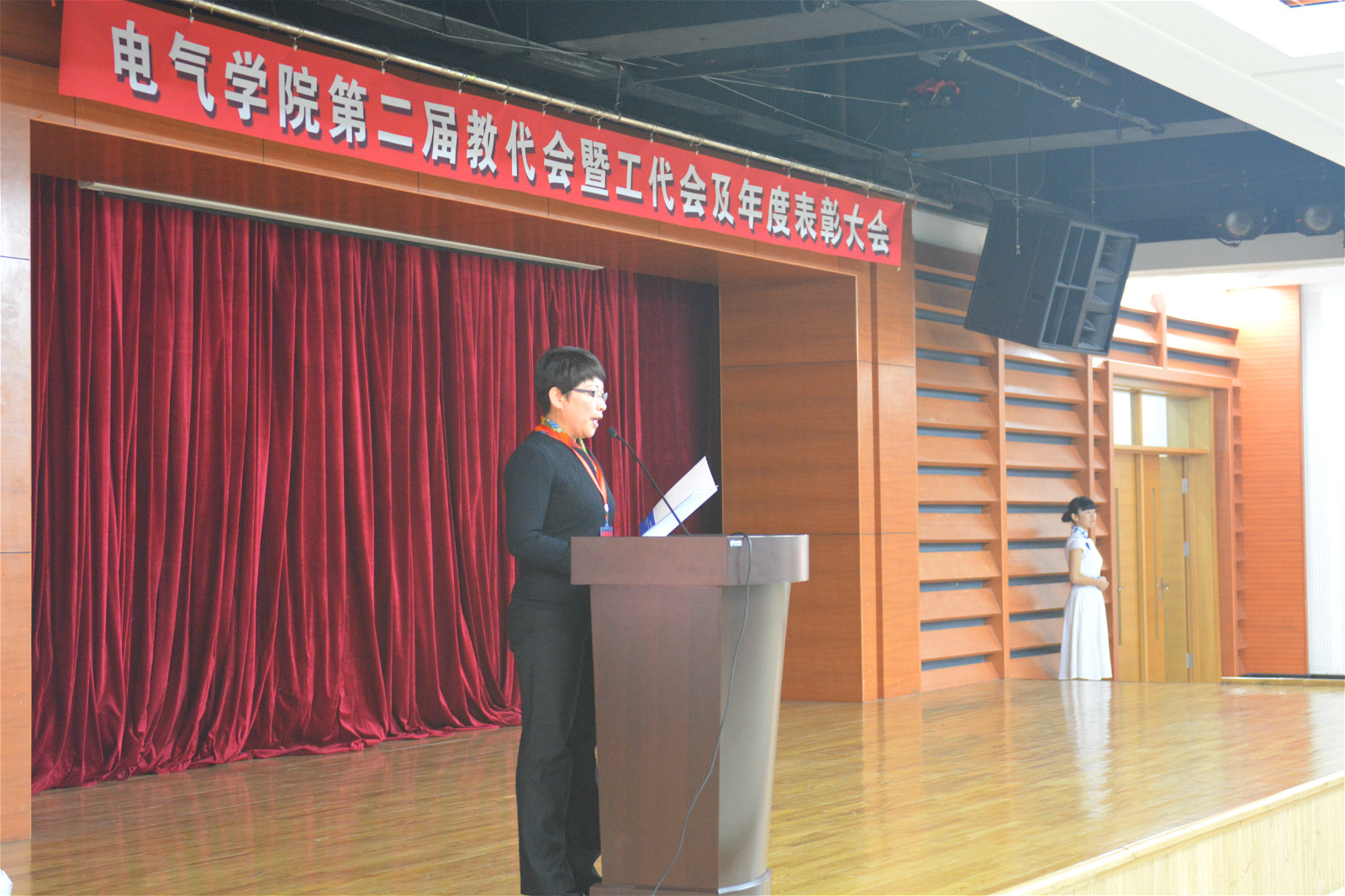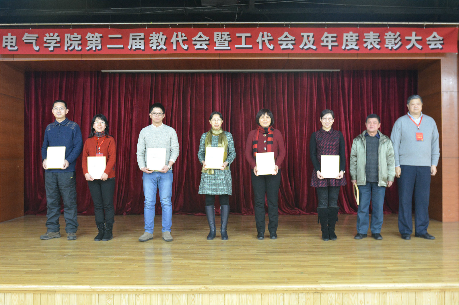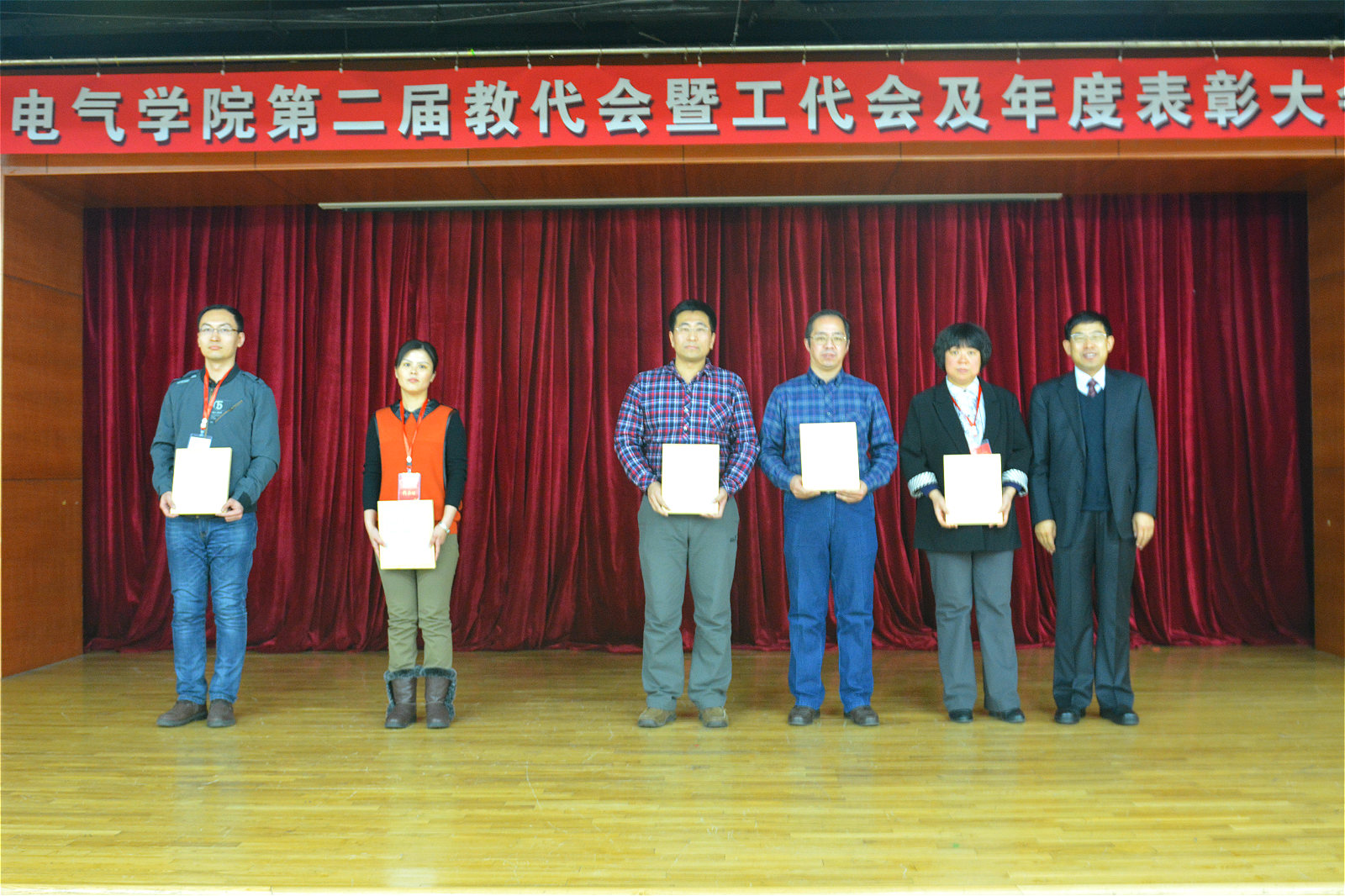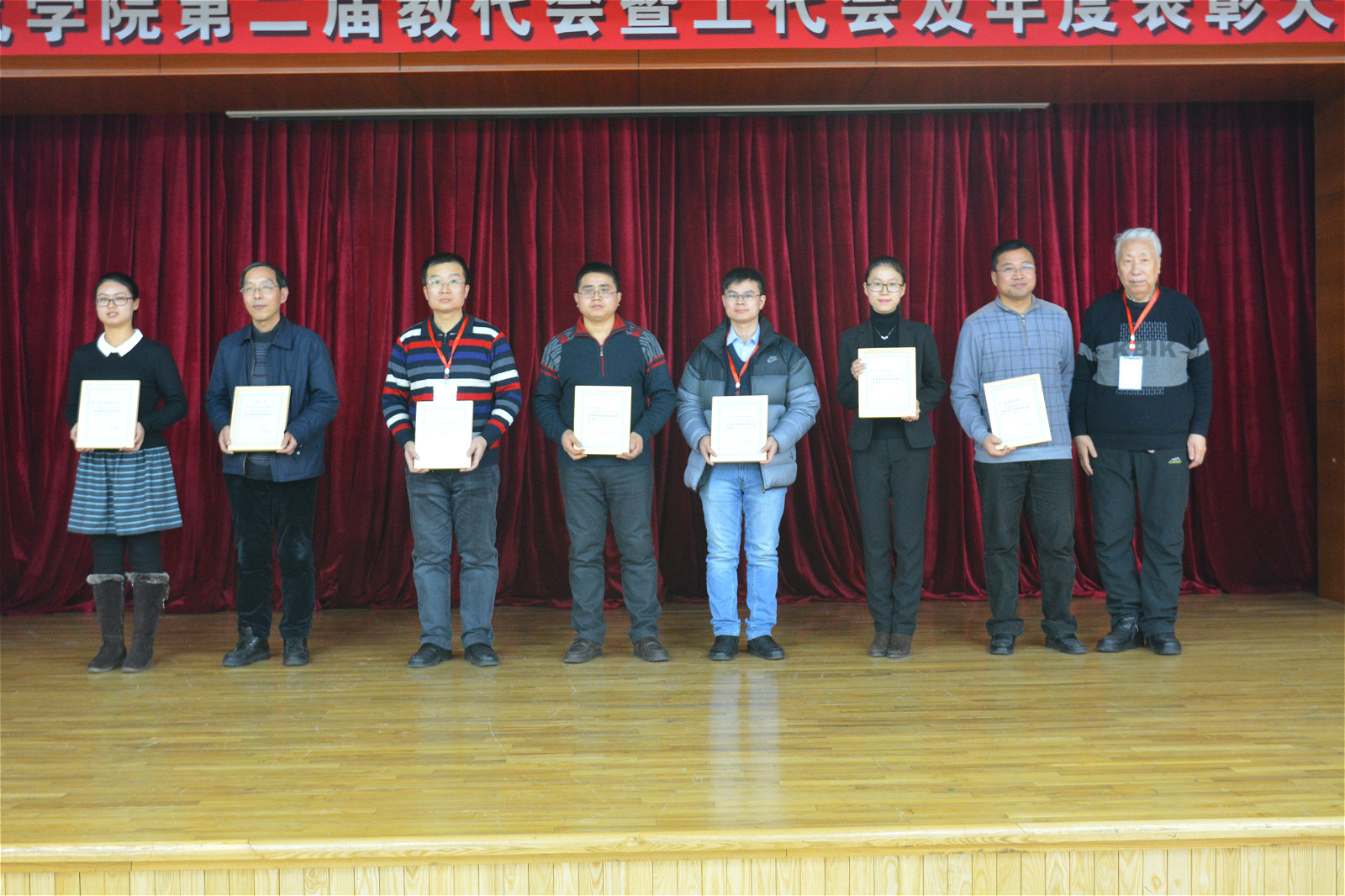 2015年12月30日15:30,自慰喷水 2015年度先进集体和个人表彰大会在活动中心201顺利召开。国家教学名师蔡惟铮教授、黑龙江省高校教师年度人物吴建强、以及学院、系、所、中心的领导班子成员及学院教师代表出席了本次表彰大会。