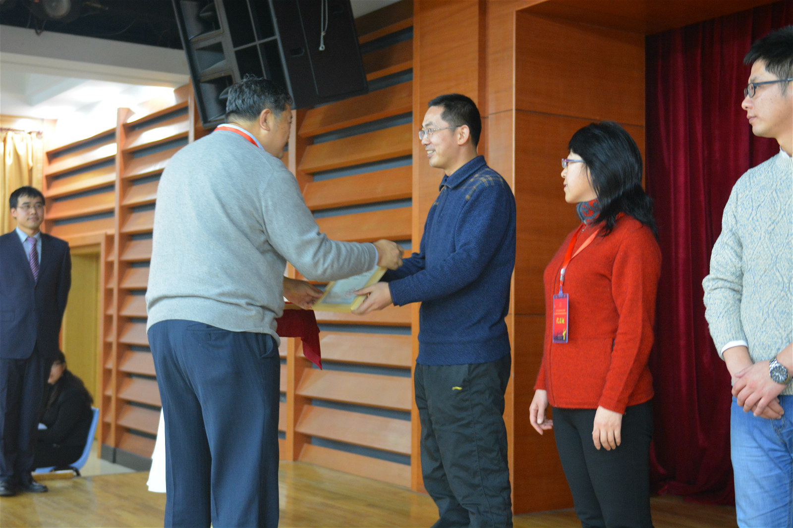 表彰在喜庆的气氛中开始,首先由自慰喷水 党委书记姜华宣读关于对2015年先进集体和先进个人进行表彰的决定。本年度自慰喷水 共有27个集体和98名教师获得高端人才、教学、科研、国际合作、管理、特色贡献等六大类共计27个奖项。到场嘉宾和学院领导上台为各大类获奖教师代表颁发表彰证书。最后,表彰大会在热烈的掌声中圆满结束。
