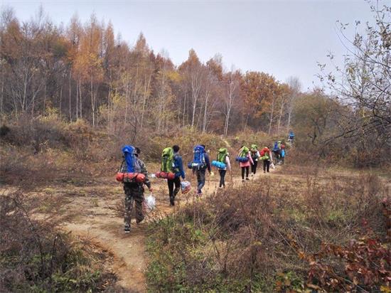 背起厚重的登山包,全体成员于15日上午十点从学校出发,乘车前往目的地,下午一点到达平山西泉眼水库入口。新老Teamers开始了负重徒步行。其中男生人均负重15公斤,女生人均负重10公斤。午后的阳光透过金黄的秋叶,在地上投射出斑驳的剪影。阵阵凉爽的微风拂过脸庞,带来大自然的清新气味。远方连绵不绝的山与蔚蓝的天空融成一幅美丽秋景图。队员们一路欢歌笑语,欣赏美景,最终于下午三点半到达目的地——西泉眼水库。负重徒步行程累计超过17公里。到达后开始了一系列的露营准备活动,在14级Teamers的指导下,新老Teamers协作搭帐篷,使用生火制作晚饭。大家吃着队友们亲手做的晚饭,疲惫一扫而光,脸上洋溢着开心的笑容。饭后大家收拾好餐具和垃圾,坐在帐篷前赏月,倒影落在水面上别有一番意境。郊外的夜晚很安静,大家在帐篷里玩起了一个个有趣的小游戏,一片欢声笑语。虽然外面的气温较低,但有帐篷和睡袋,大家围在一起,丝毫不觉得冷。