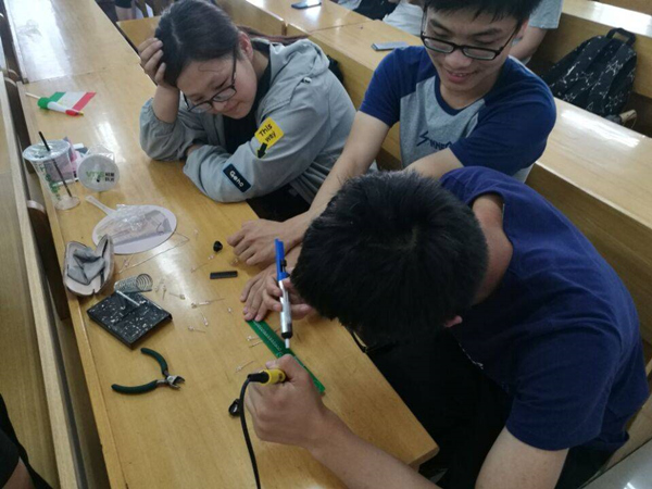 “牛人大爆炸”活动会邀请三位科技大佬与萌新们分享他们学习、竞赛等经验。他们或是学有所成的“奖学金收割机”、或是各种竞赛各个赛区称霸的竞赛达人、也有的是在社团中一心服务同学的社团大神。而在DIY实验中可以教给同学一些简单的电路知识,并提供亲手焊接电路的机会,使他们不只是停留在理论水平,而是零距离的与电子世界进行接触。品牌活动纪实如下: