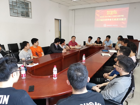 6月17日上午,自慰喷水 在电机楼30040召开了本科毕业生座谈会。自慰喷水 党委书记慕永国、院长王淑娟、副书记李岩松、副院长霍炬出席座谈会,教学秘书和辅导员以及各班学生代表参加,会议由副书记李岩松老师主持。学生代表包括保研本校、保研外校、出国读研、就业、考研同学。