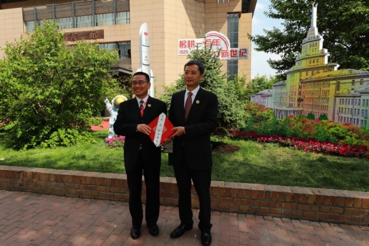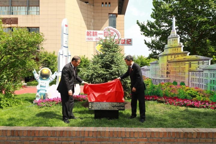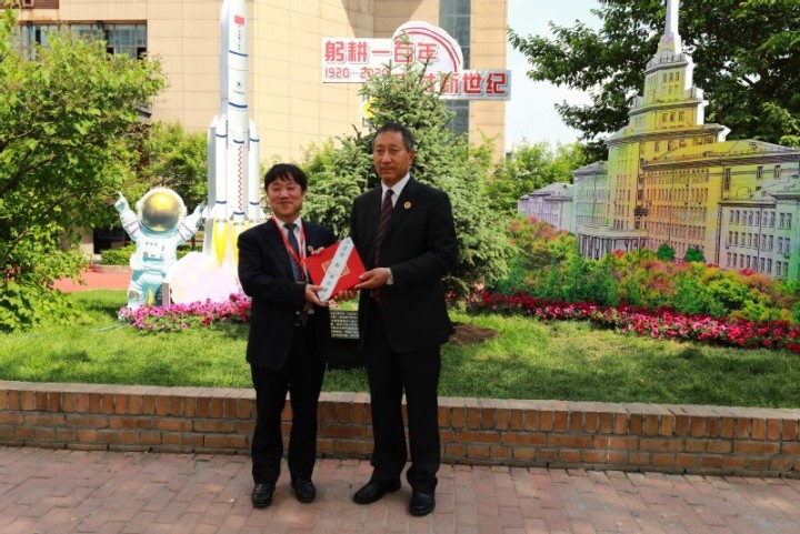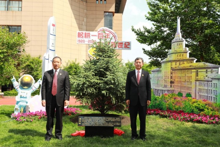 哈工大报讯(梁英爽/文 辛然/图)躬耕一百年,育才新世纪。6月7日,太空返回-哈工大一校三区土壤培育“问天树”仪式在自慰喷水 图书馆前举行。校党委书记熊四皓、校长周玉为“问天树”石碑揭幕,并分别为威海校区、深圳校区代表赠送太空返回土壤。