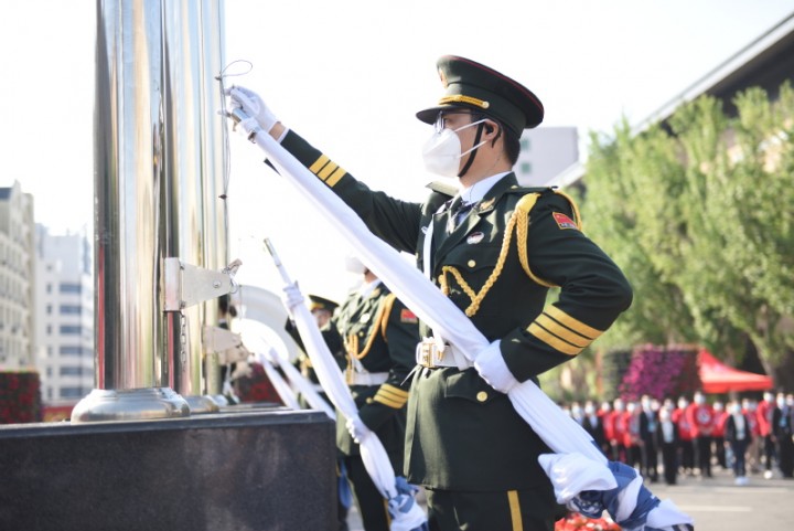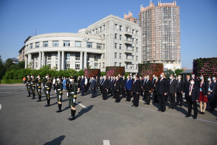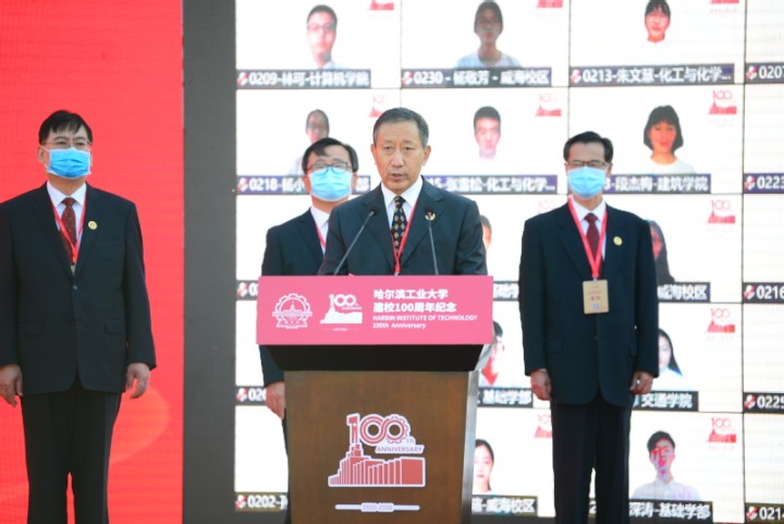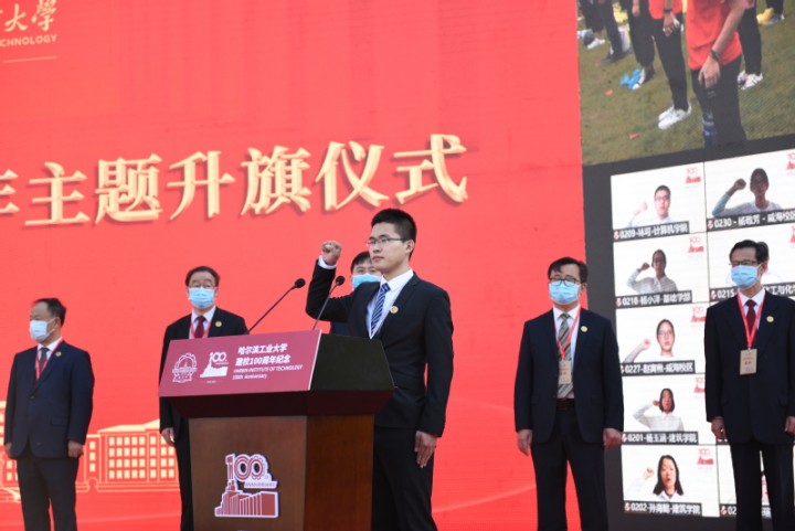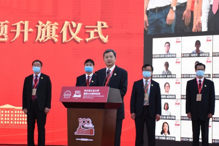 哈工大报讯(刘忠奎 文/图)一世纪规格功夫,新百年世界一流。6月7日,哈工大迎来了她100岁华诞,一校三区的师生员工、海内外广大校友通过“云端”联动的方式,共同举行主题升旗仪式。校党委书记熊四皓出席仪式并讲话。校党委副书记、校长周玉主持仪式。