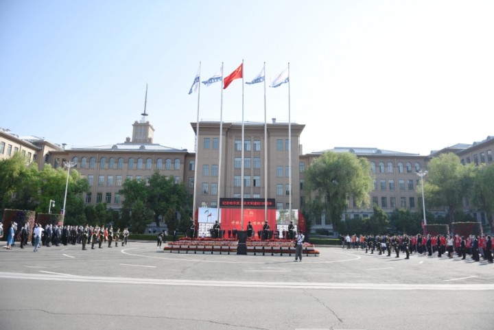 熊四皓指出,今天,我们迎着哈工大新百年的第一缕曙光,共同举行一校三区主题升旗仪式,向全体师生员工和海内外广大校友致以节日的问候!一百年来,特别是新中国成立70多年来,哈工大坚持面向国家重大需求、面向国际科技前沿、面向国民经济主战场,忠诚报效、激励自强,以有口皆碑的人才培养特色、享誉全球的科学研究实力、务实担当的社会服务能力、胸怀家国的文化传承根脉,向党和人民交上了优秀答卷。