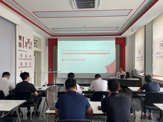 刘爱军教授以“学深悟透习近平总书记关于党的自我革命的重要思想”为题,系统阐述了习近平总书记关于党的自我革命的重要思想的重大意义,并从“我们党为什么要自我革命、我们党为什么能自我革命、我们党怎样推进自我革命”三个方面进行了深入解读。刘爱军教授指出,勇于自我革命是我们党最鲜明的品格,是党领导人民进行伟大社会革命的客观要求,是马克思主义政党建设和发展的内在需要,我们必须把严的基调、严的措施、严的氛围长期坚持下去,把党的伟大自我革命进行到底。