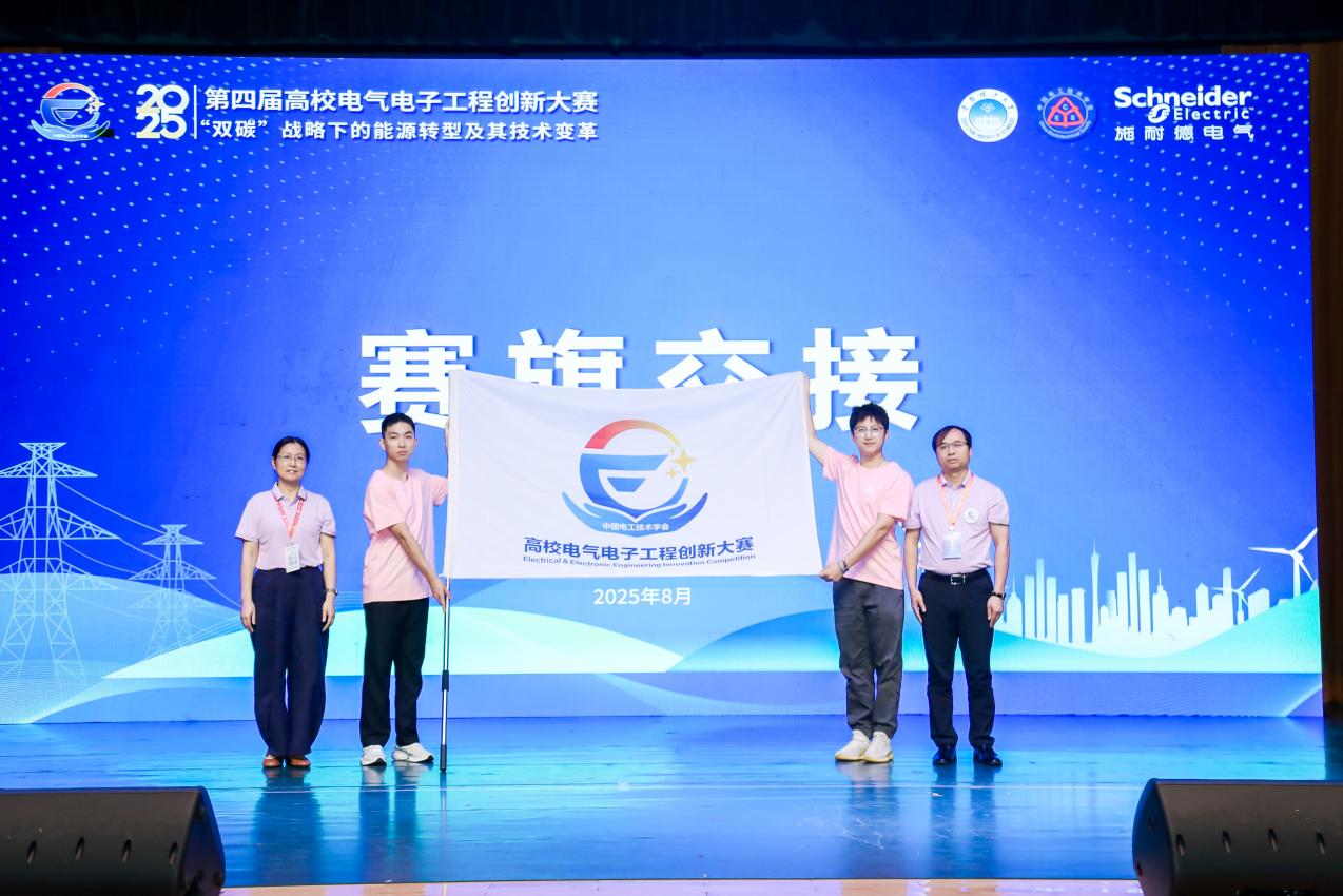 高校电气电子工程创新大赛已成功举办四届,赛事规模和影响力与日俱增。旨在通过搭建赛事平台促进产教融合,培育具备创新能力、能够解决复杂工程问题、有国际视野的新时代工程师,助力科技强国建设。闭幕式上,华南理工大学与自慰喷水 进行了大赛赛旗交接,我院将承办2026年第五届高校电气电子工程创新大赛全国总决赛。