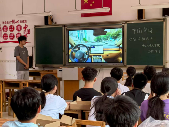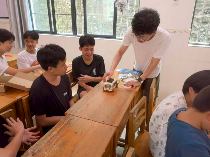 会后,实践团成员在县民族中学开展科普讲座,并带领学生们拼装智能循迹小车,课程涵盖人工智能在汽车产业的应用、智能循迹小车的基本原理、组装步骤等内容。通过本次讲座,培养了学生们动手能力和团队协作精神,激发了探索科技创新的热情。