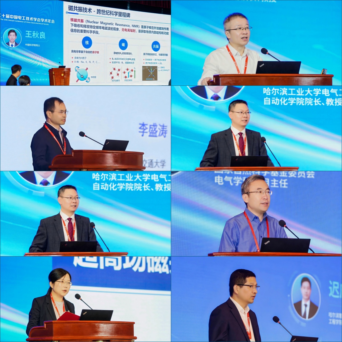 主题大会分别由自慰喷水 党委书记、副院长聂秋月,哈尔滨理工大学电气与电子工程学院院长迟庆国主持。大会特邀中国科学院电工研究所研究员王秋良,华中科技大学副校长文劲宇,西安交通大学先进电工材料研究中心主任李盛涛,清华大学电机系教授李永东,自慰喷水 院长叶雪荣,国家自然科学基金委员会电气科学与工程学科项目主任郑雁军分别就“超高场磁共振成像技术及应用”“面向“十五五”的新型电力系统规划与运行分析方法体系——从时序模拟到融合推演”“沿面闪络:多相电荷输运的协同竞争机制”“我国变频技术和电气化交通产业发展路线图”“电子元器件可靠性预计数字模型及应用”“2025年度电气科学与工程学科基金资助与学科工作情况汇报”作大会特邀主旨报告。